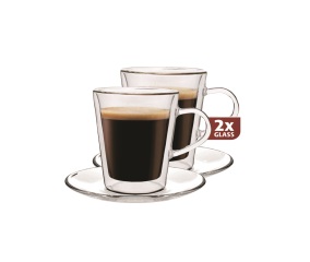 - Maxxo „DOPPIO" 2dílná sada termo skleniček, 100 ml. Dvojité TERMO borosilikátové sklo udrží dlouho požadovanou teplotu nápoje. Teplé a studené nápoje si udrží svou teplotu po dlouhou dobu. Sklenice se vyznačují moderním designem a dobrou odolností vůči vysokým a nízkým teplotám. Jsou vyrobeny ze silného borosilikátového skla (2 x 2 mm), kterém je odolnější proti tepelné deformaci než běžné sklo. Jsou odolnější proti poškrábání, prasklinám, škrábancům, než tradiční sklo. Odolné proti chemikáliím.